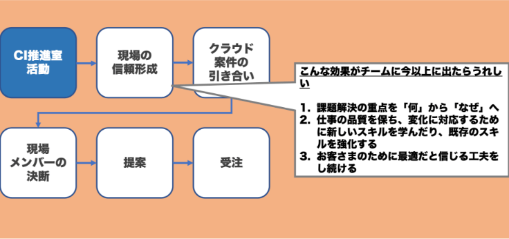 クラウドインテグレーション(CI)推進室は、当社エンジニアの存在価値を向上させるために、DevOpsやクラウド活用を積極的に実践する取り組みを社内外に向けて実施しています。