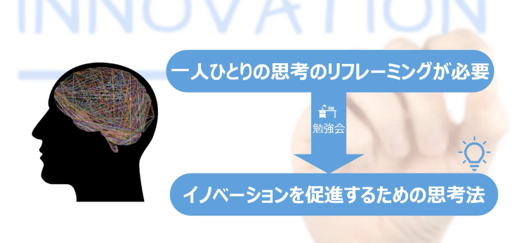 イノベーション勉強会は、新しいビジネスモデルで世の中を切り開くイノベーターたちの勉強会です。講義、ワークなどを通じて、ビジネスモデル思考の普及啓発を行い、イノベーションの最前線の実践知を共有しています。